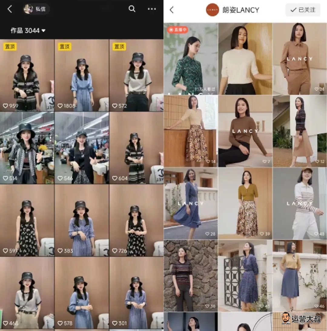 左为抖音“刘纯服饰”,右为视频号“朗姿LANCY”