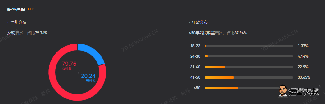 新榜编辑部认为,家庭和睦、生活自在、工作充实的三妈为RuienCo的用户展现出一种她们认可的生活状态。据了解,“我是摩羯”的核心用户是50-60岁女性,基本是三妈的同龄人。