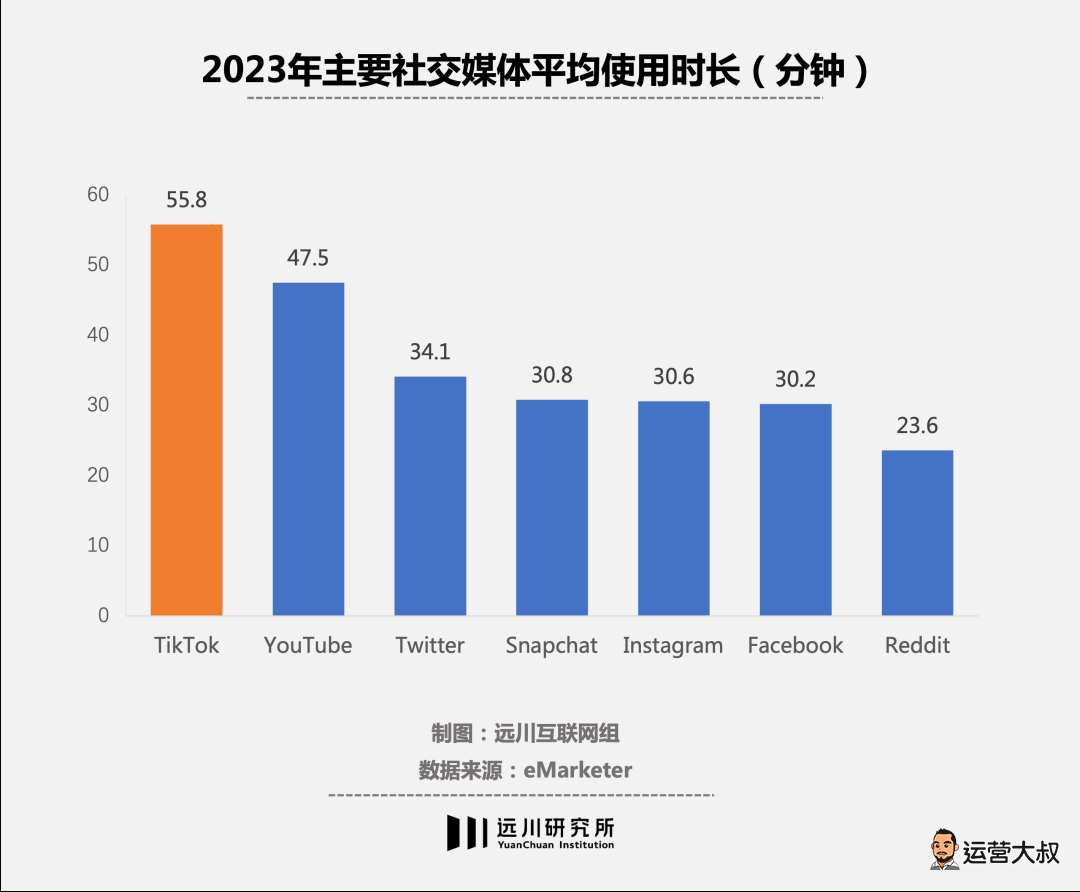 2021年初,TikTok的美国用户规模就已经超越了Instagram。但在2年后的2023年6月,TikTok的美国月活数量为1.48亿,Instagram为1.34亿[3],差距并没有被拉大。