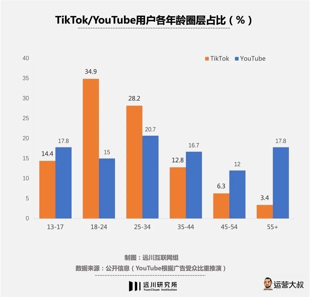 相比之下,YouTube用户有2.63亿(全美也只有近3亿网民),Facebook坐拥2.57亿用户,范围覆盖全年龄段,更像是抖音在中国的定位——真正的全民APP。