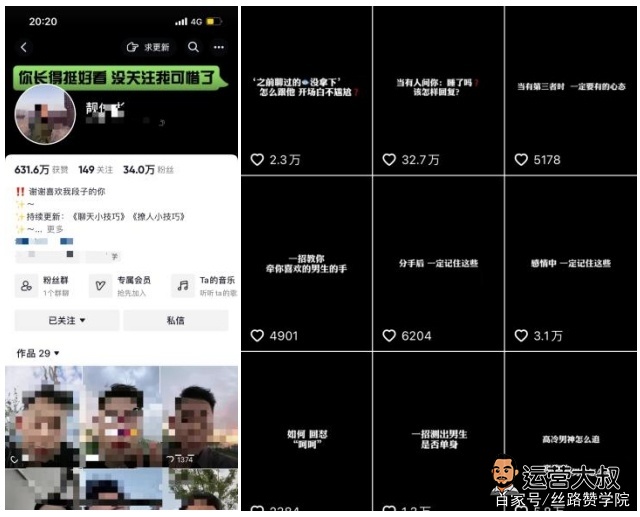 都说抖音是内容为王,只要你的作品好,谁都有机会上热门,上了热门也就意味着有更多的流量推荐和销售转化。在聊情感账号怎么做之前,先给大家分享几条视频,了解一下情感类账号总共分为哪几样表现形式。