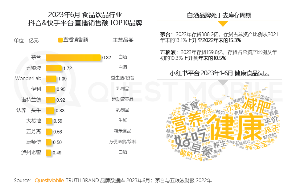Ⅱ. 食品饮品行业 – 6月酒类销售淡季期间,白酒品牌正值去库存周期,以价换量,销售表现亮眼;同时消费者对健康食品关注度上升,除乳制品外,主营运动营养品,益生菌的品牌销售跻身前列