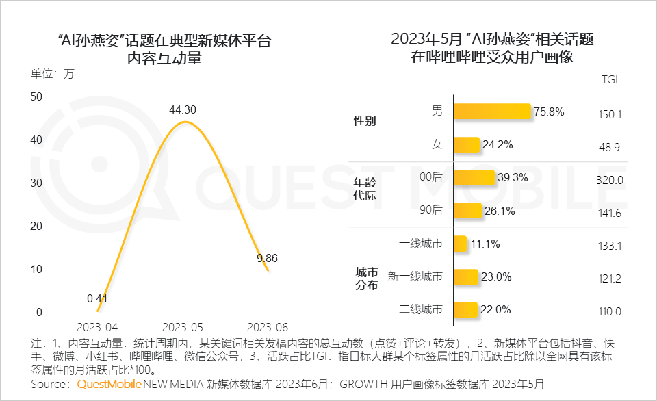 2023年Q2,“AI孙燕姿”话题引发用户讨论,AIGC在音乐领域的应用受到更多年轻用户群体的关注。