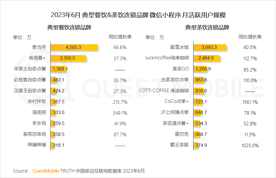 2.3 各大餐饮、茶饮品牌用户需求也得到大幅提升,平台流量同比均呈现较大增长