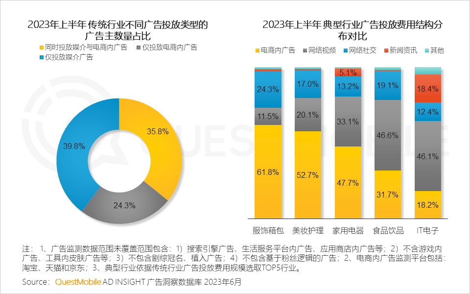 QuestMobile数据显示:传统行业广告主中,约有60%广告主在电商平台内投放广告。