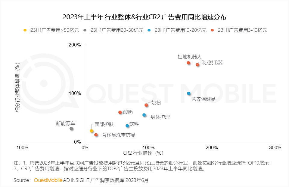 2.6 细分行业间增长特征差异明显,家电细分行业由头部广告主增长驱动,新能源车行业投放增长的同时头部广告主投放收窄