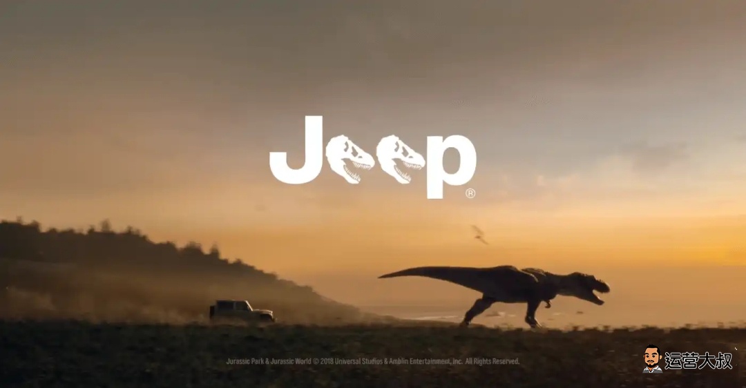 下面是来自 Jeep在“美国春晚”超级碗的插播广告,结合了当时大火的电影《侏罗纪世界: 堕落王国》,广告里 主 角 开着Jeep牧马人上演《 侏罗纪世界》经典的霸王龙和吉普车的追逐镜头,最后的 神转折,让人 尴 尬又搞笑。