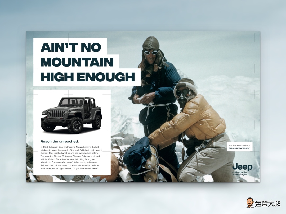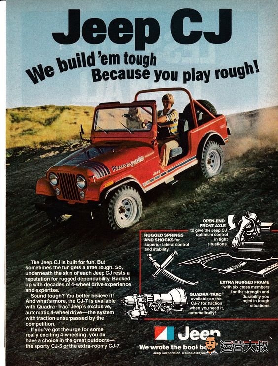人们都说现在的地产广告文案硬,但我必须要说,那是没见过Jeep的文案,那个才叫真的硬,光从首字母就能看出来它有多硬。