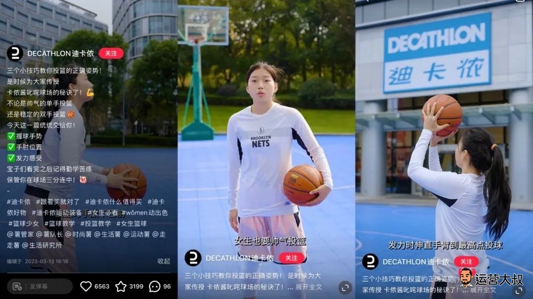 比如,今年3月,迪卡侬发布了题为《三个小技巧教你投篮的正确姿势》的视频笔记,由于细节介绍到位、适用人群广泛,收获了6563个点赞、3199个收藏。以攻略性质的笔记形式阐述知识点,知识量越多,网友记不住便会转为收藏,毕竟“收藏=学会”。