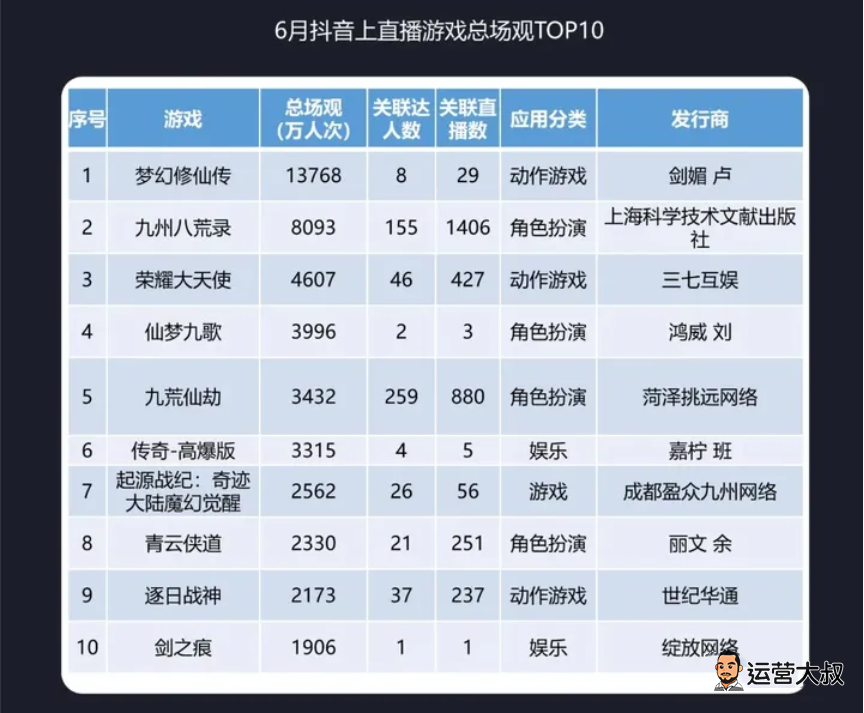 但抖音庞大的用户群中,游戏内容兴趣人群数量也相当可观,于是抖音只能先从休闲类游戏直播破局,走出一条虎牙斗鱼没走过的道路。据一份2021年的报告显示,彼时在抖音直播间场观最高的游戏主要都是修仙、传奇类。