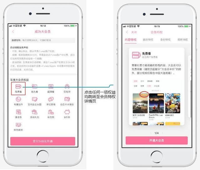 完善大会员的权益说明,大会员开通页下方的各项权益介绍,每个点击都可查看详情。