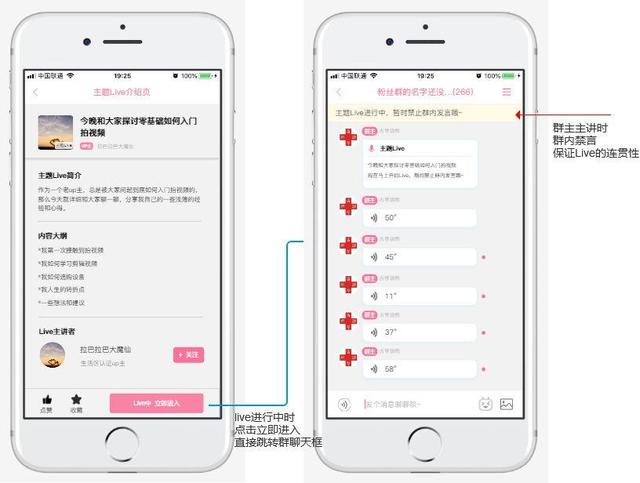 1)群聊的对话框需要显示在聊天列表页,按照最后对话的时间倒序排列。当有未读信息且开启消息提醒时,首页右上角的小信封需要显示消息数字提醒