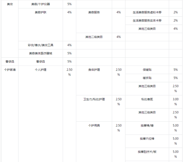 部分一级类目下的二三级类目的服务费又有不一样的,比如家庭/个人清洁工具里的清洗剂阶梯技术服务费