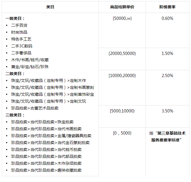 比如,你卖的二手潮品鞋服,商品结算单价是800,就要按照阶梯费率的2%进行扣点。