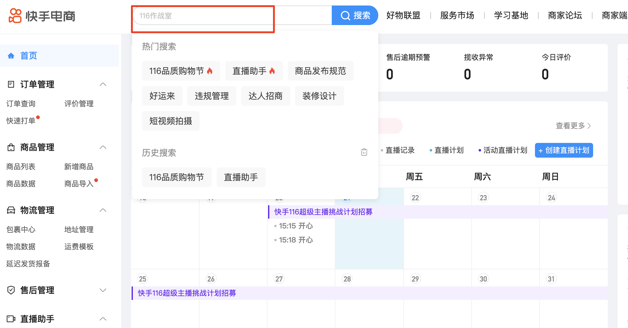 快手小店搜索是什么? 快手 23年2月27日 编辑 运营小编 取消关注 关注 私信 什么是小店搜索? 用户在使用平台时,可以在搜索框内快速找到自己想要的信息,提高小店使用效率。 在哪里可以找到小店搜索的功能? 移动端 PC端 登陆快手小店商家后台,找到顶部搜索框即可 给TA打赏 共{{data.count}}人 人已打赏 小店搜索快手小店