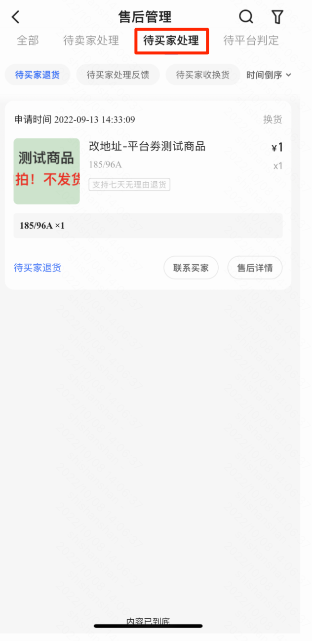 待买家处理分为:“待买家退货”,“待买家处理反馈”,“待买家收换货”三个子状态;