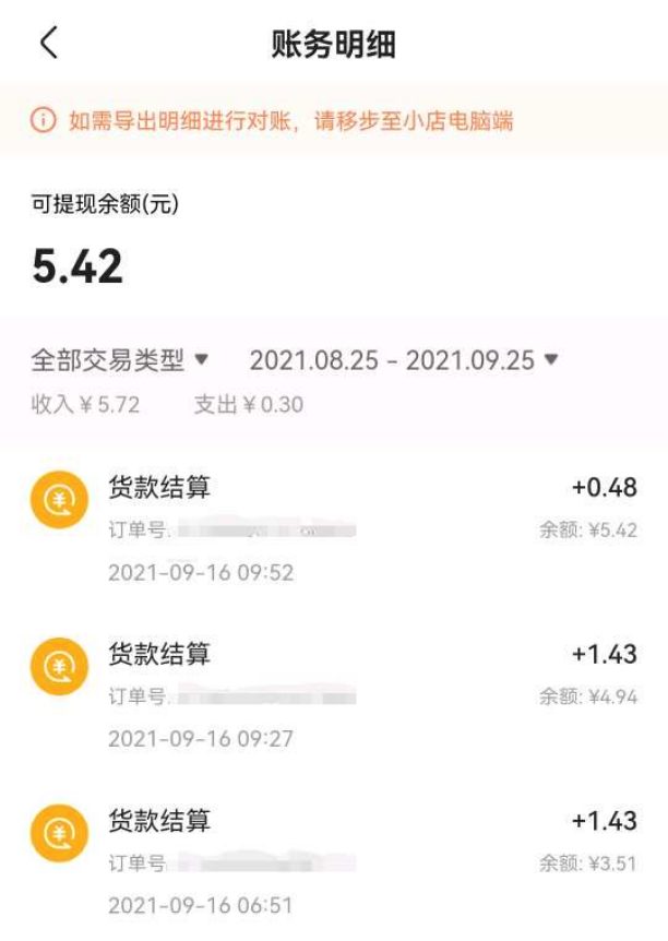 查看路径:【app端卖家后台】-【佣金收入】-【佣金账单管理】,可查看日账单及月账单。