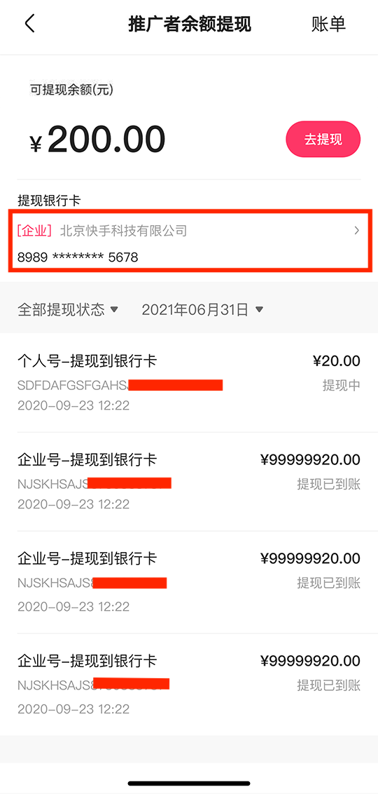⚠️注意:仅支持更换与绑定主体一致的银行卡,如A主体想使用B主体的银行卡提现则不支持。