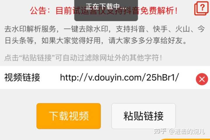 最终一步,张贴抖音视频链接到小程序里边,然后下载保存。