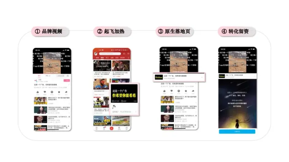 2、品牌号视频 + 商业起飞加热 + 原生落地页转化