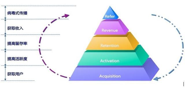 其实对于每一个运营人来说,AAARR模型可以说是深入骨髓的记忆,AAARR分别对应着产品生命周期的5个重要环节,分别是获取用户—提高活跃度—提升留存率—获取收入—病毒式传播,其中提高活跃度和提升留存率这两个环节,在运营实操中会合并为留存运营,那么接下来,赋能就从第一步出发,来给大家简单聊聊如何获取新用户。